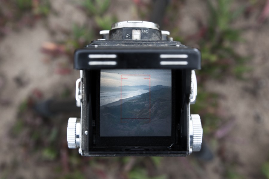 Top down view of a Yashica-635 Twin Lens Reflex.